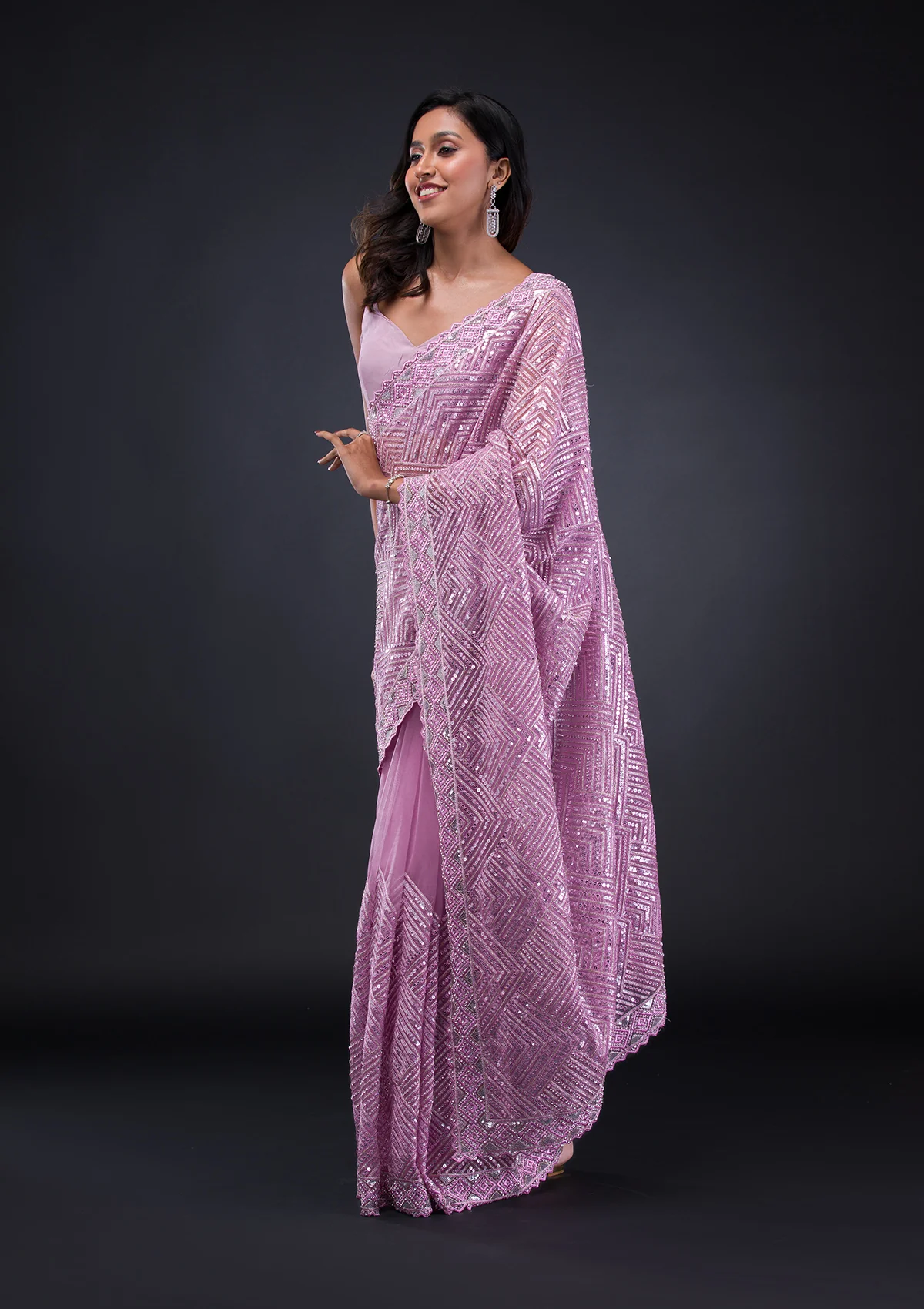 Lavender Threadwork Net Saree
